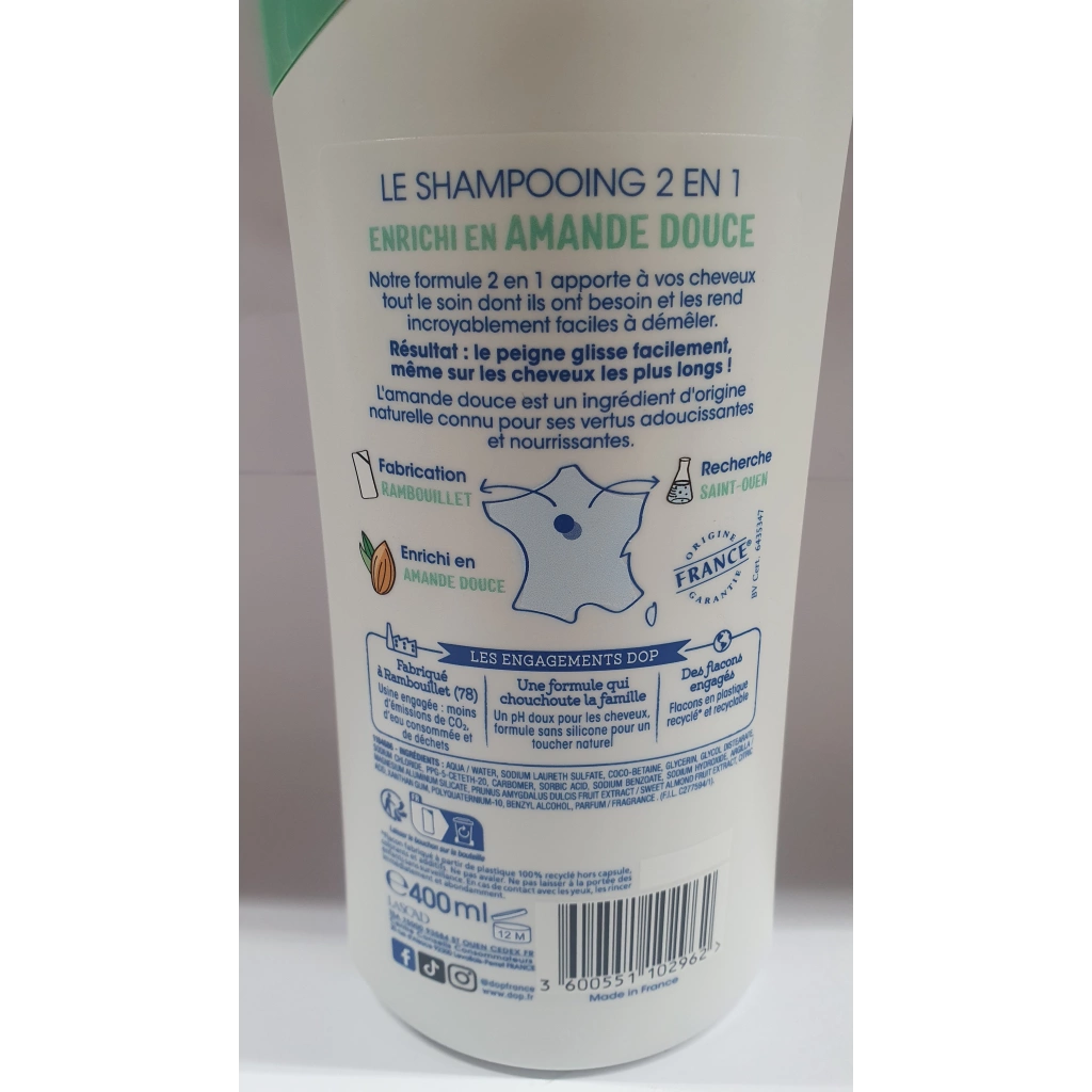 Shampoing tres doux amande bio 2en1 pour tous types de cheveux