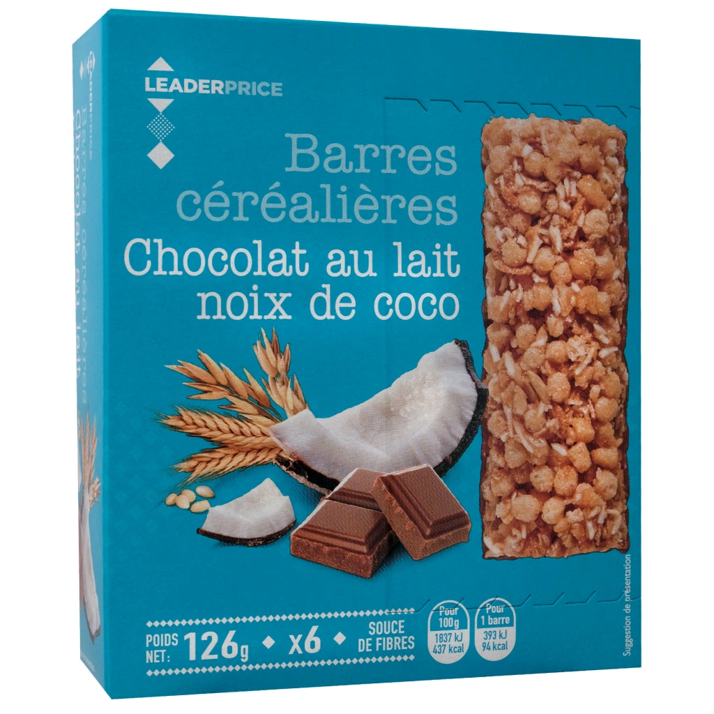 6 Barres de cereales cholait au lait et noix coco