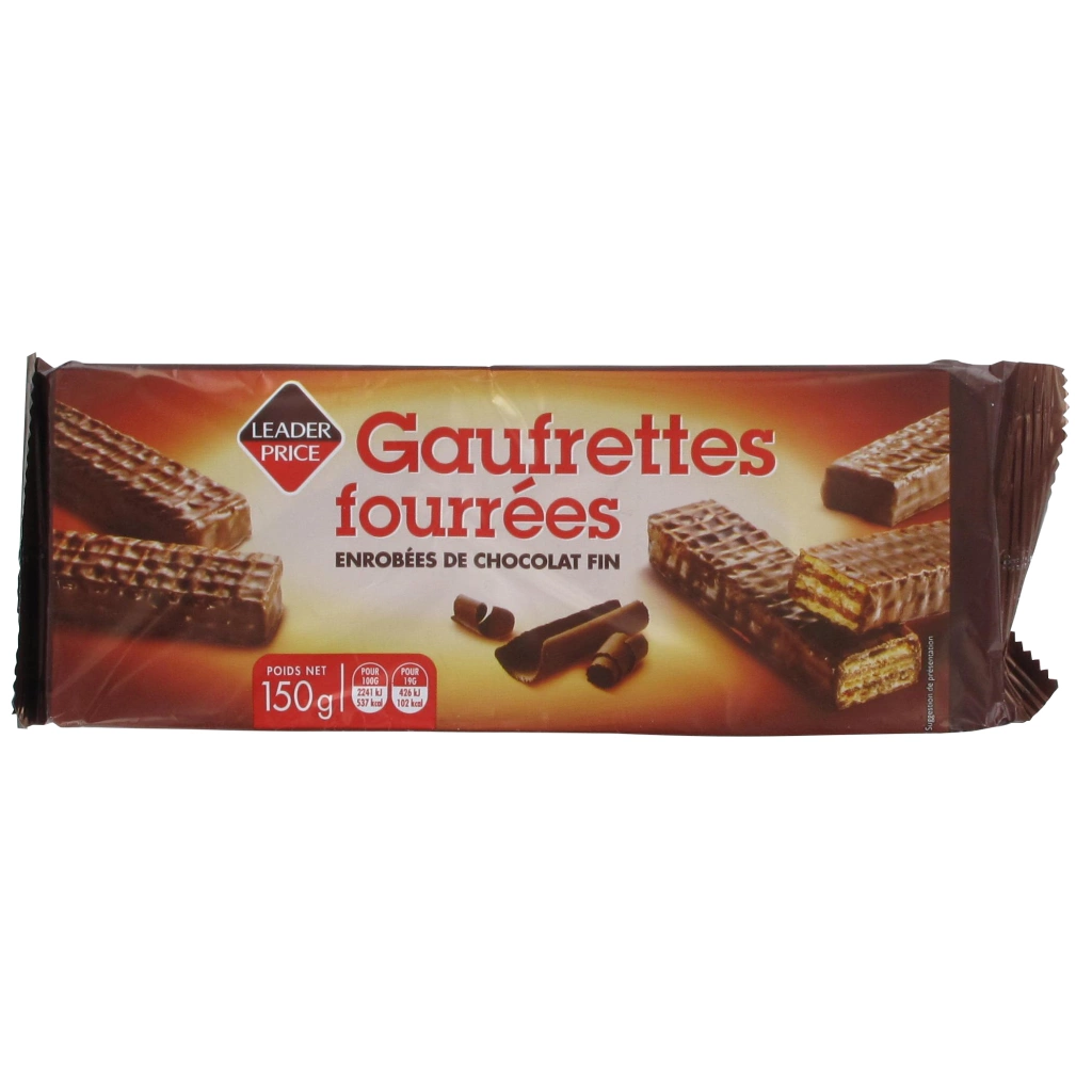 Barres de gaufrettes fourrees enrobees gout chocolat 16 biscuits