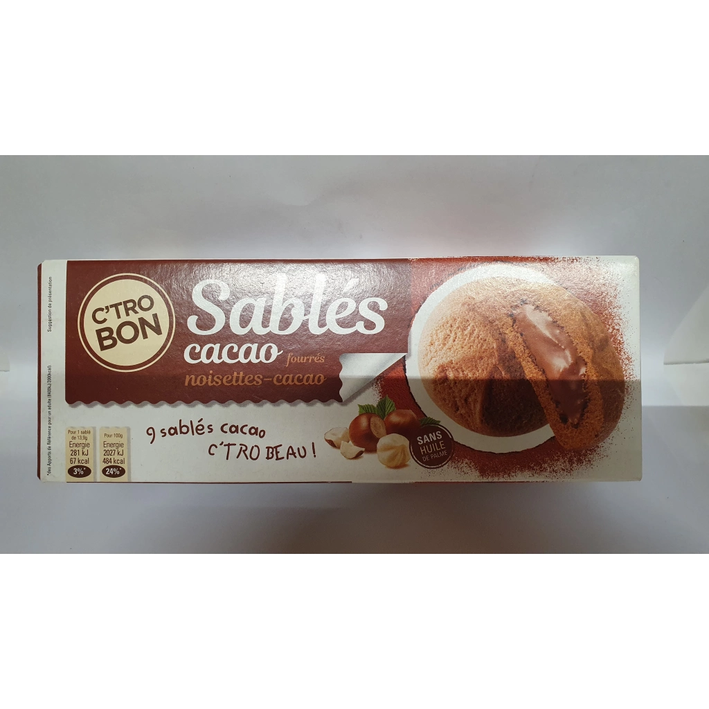 Biscuits sables cacao fourres chocolat noisette
