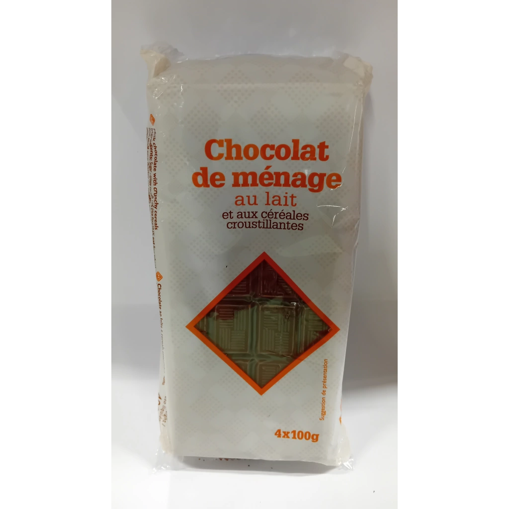 Tablettes de chocolat de menage au lait et cereales croustillantes 4 pieces